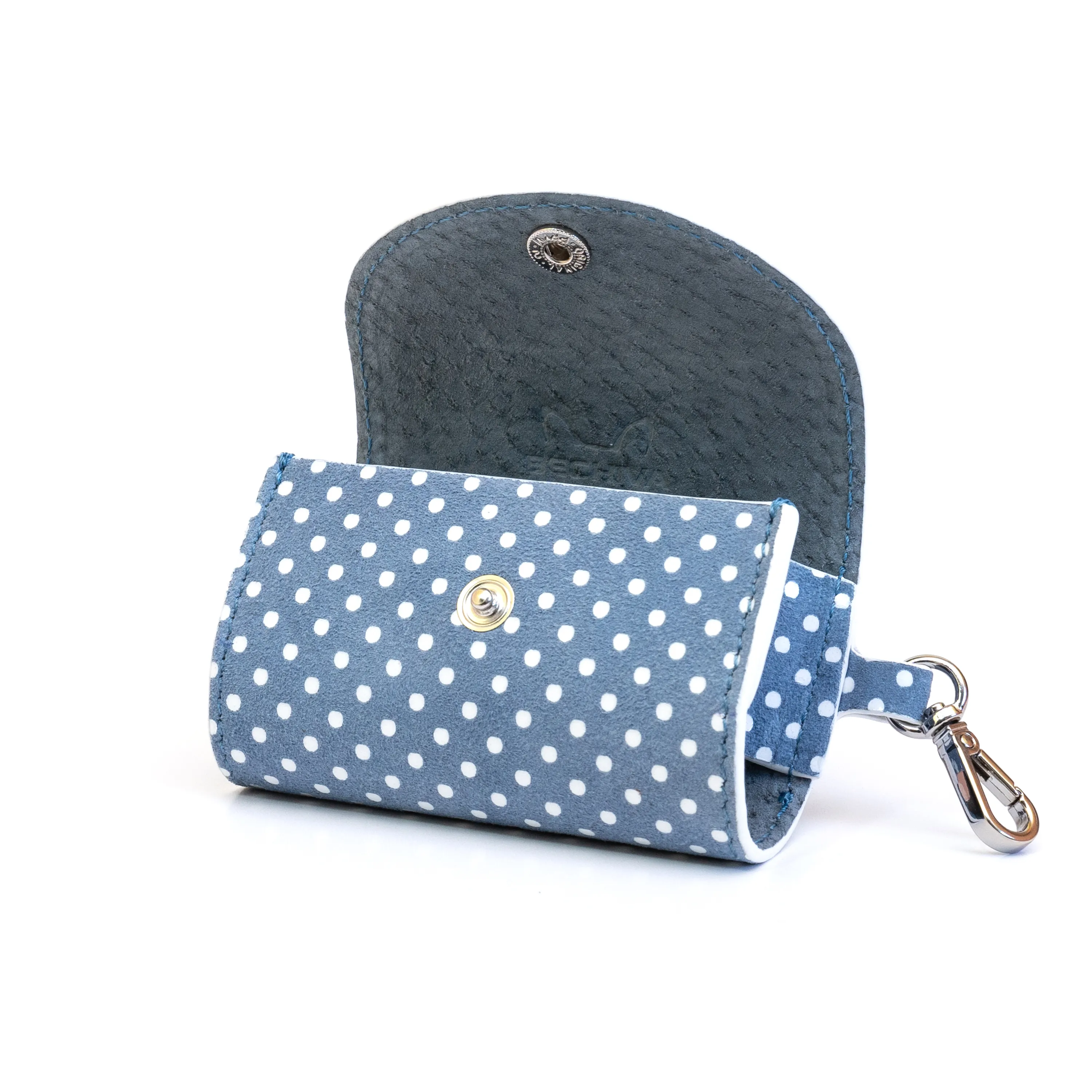 The Bechiva Leather Dispenser Bag combines premium craftsmanship with everyday functionality - an elegant solution for carrying waste bags during daily walks. Expertly handcrafted in Europe, each piece is made from soft lamb leather with a durable pig-leather lining, offering a luxurious yet practical accessory for dog owners. Compact and featherlight, it attaches easily to any leash or harness using the built-in Italian-made metal hook or D-ring.