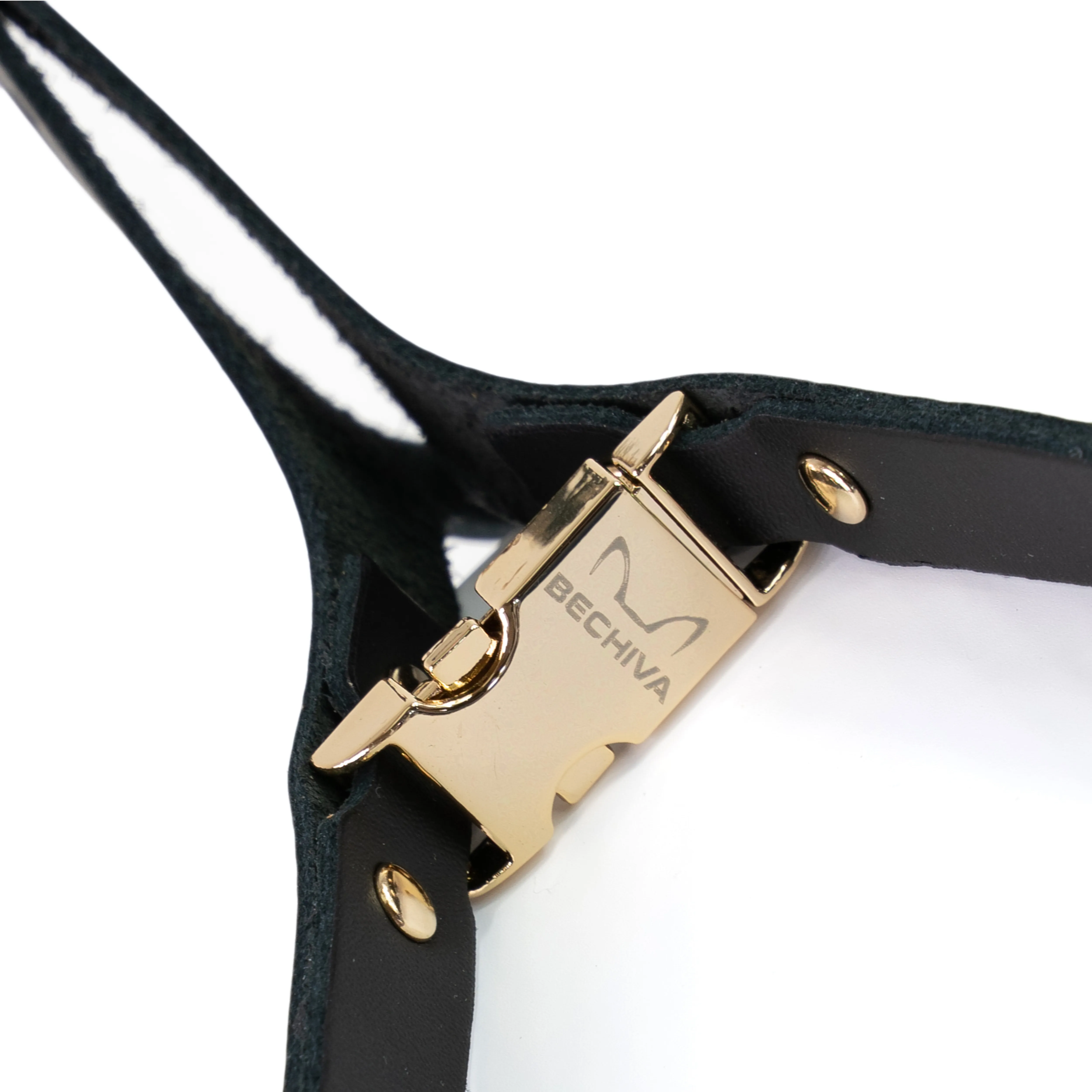 Adjustable side buckles allow a tailored fit as your pet grows, while a sturdy D ring ensures secure leash attachment. All rivets and fittings are Italian-made and plated in gold, silver or black for a polished finish. Presented in Bechiva's signature gift box, the Basic harness makes a refined retail showcase item or a tasteful gift for style-conscious pet owners.