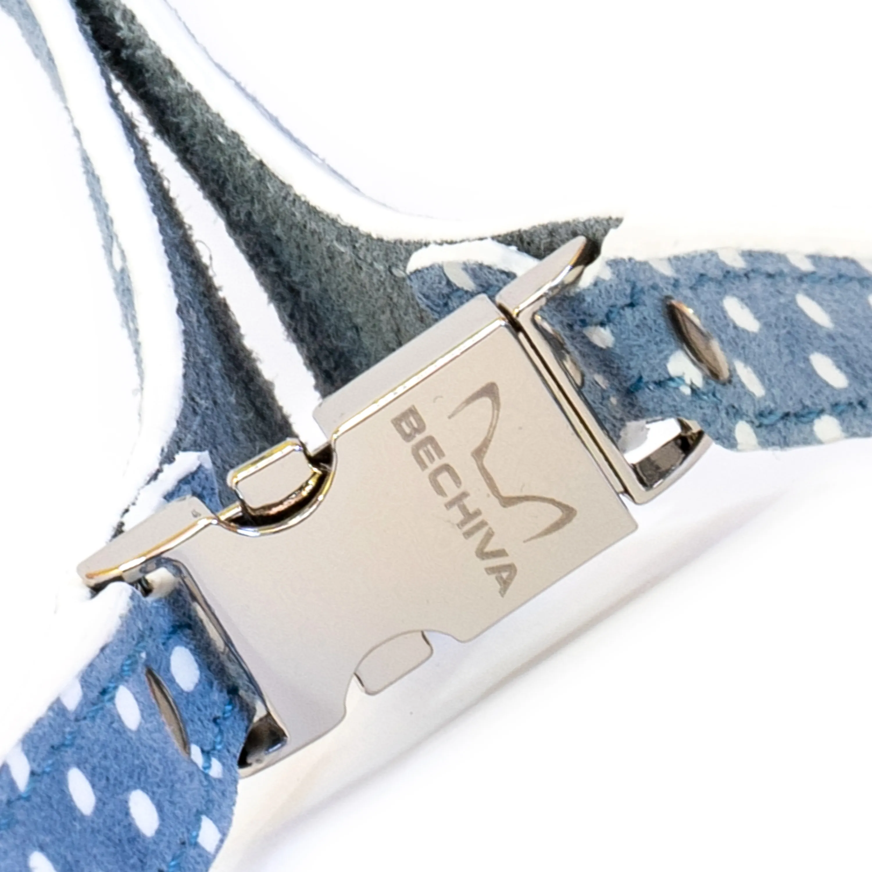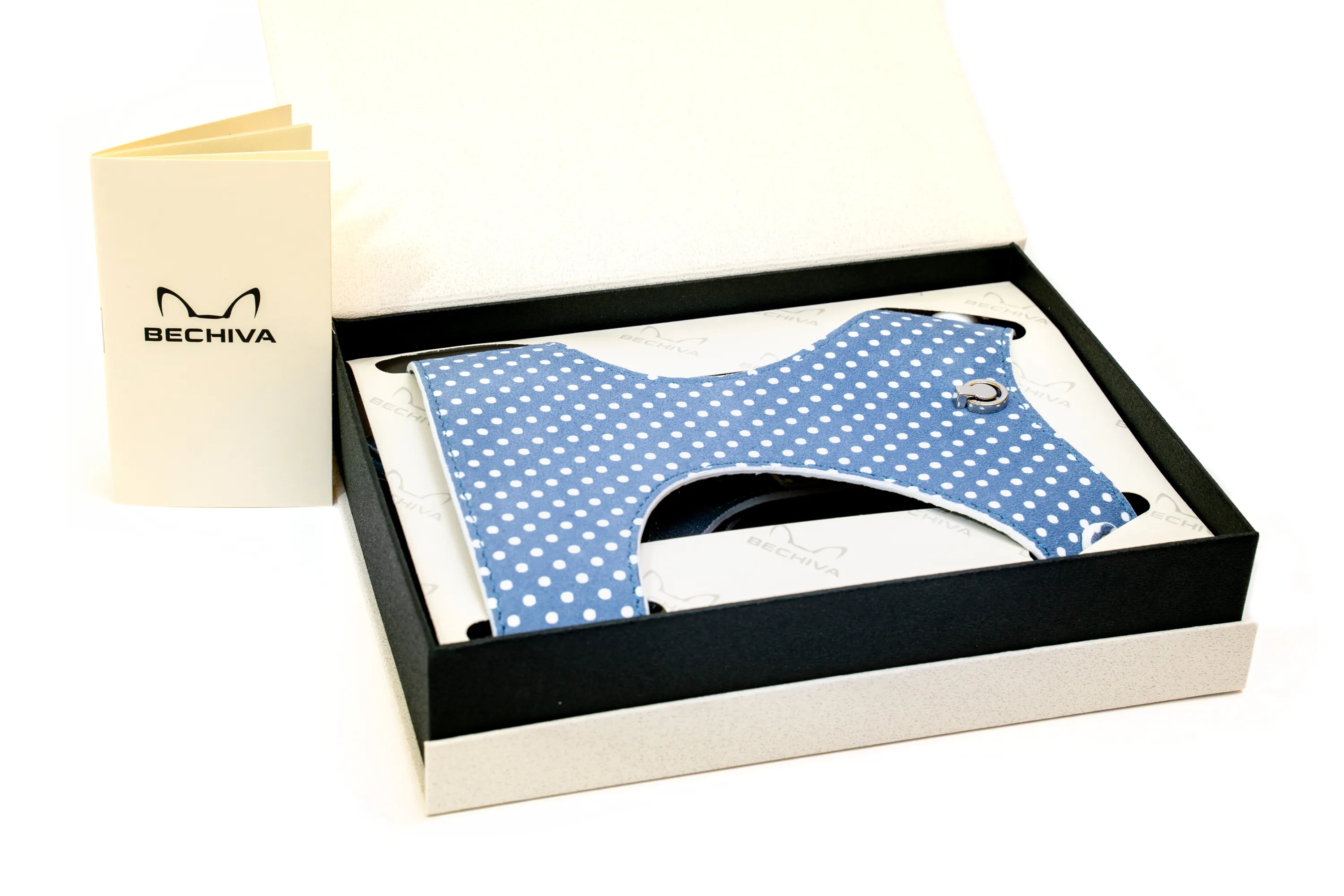 Finished with premium Italian metal hardware in your choice of gold, silver or black, the harness includes a sturdy D-ring for easy lead attachment. Whether for everyday walks or special outings, the Tino harness pairs timeless design with exceptional craftsmanship. Beautifully presented in Bechiva's signature gift box, it's an ideal choice for pet owners seeking comfort, elegance and quality in one beautifully made piece.
