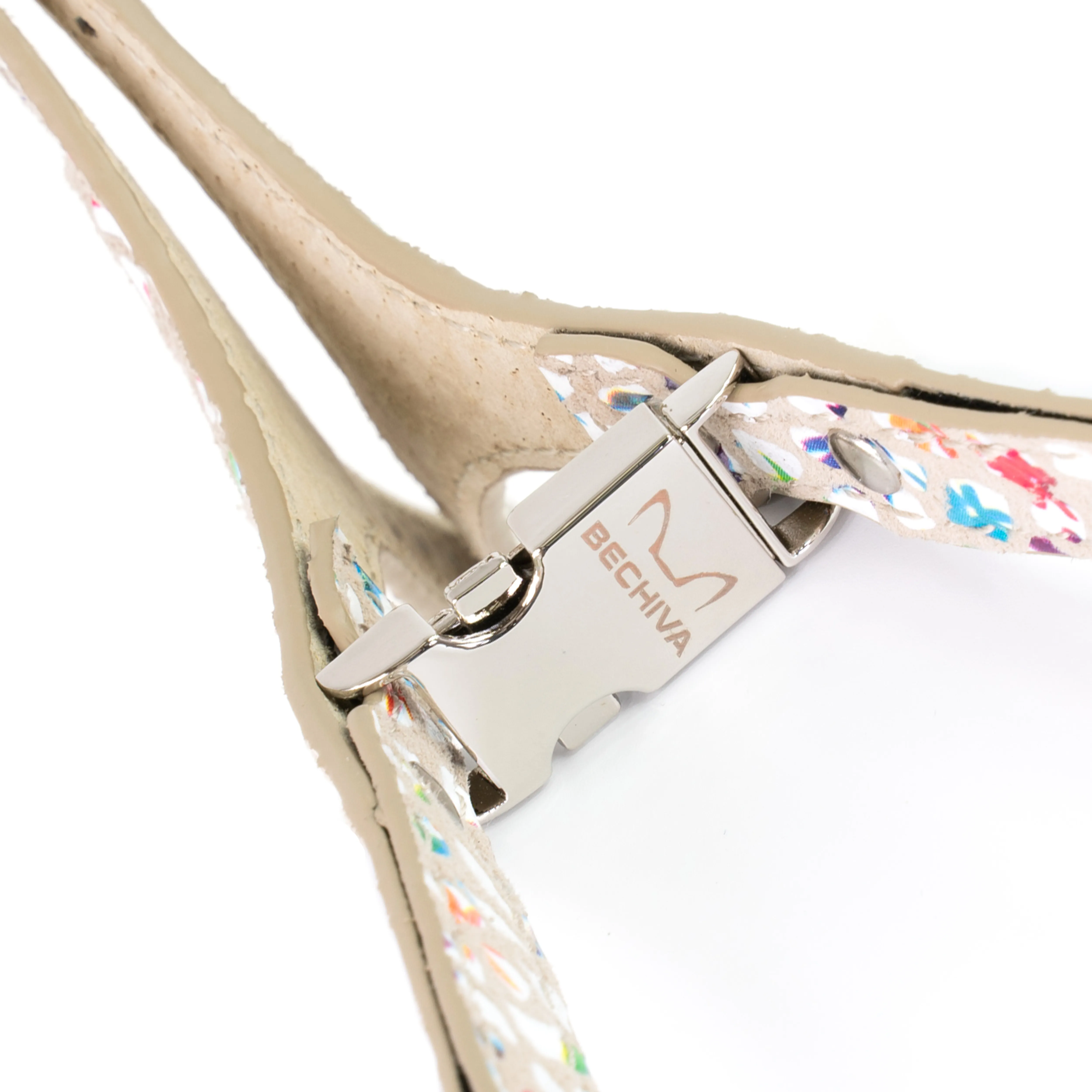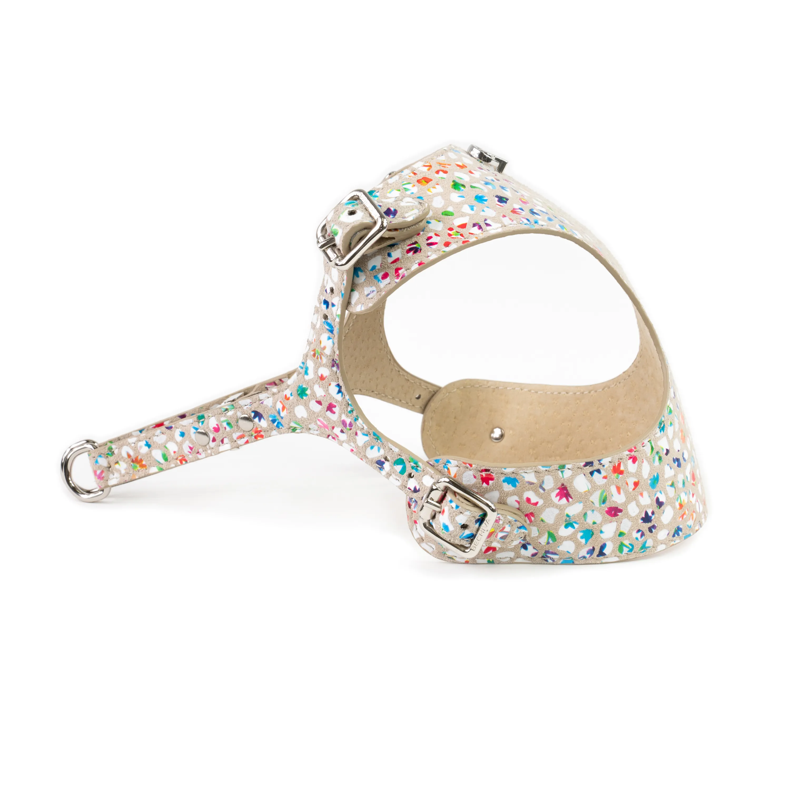 Finished with premium Italian metal hardware in your choice of gold, silver or black, the harness includes a sturdy D-ring for easy lead attachment. Whether for everyday walks or special outings, the Tino harness pairs timeless design with exceptional craftsmanship. Beautifully presented in Bechiva's signature gift box, it's an ideal choice for pet owners seeking comfort, elegance and quality in one beautifully made piece.