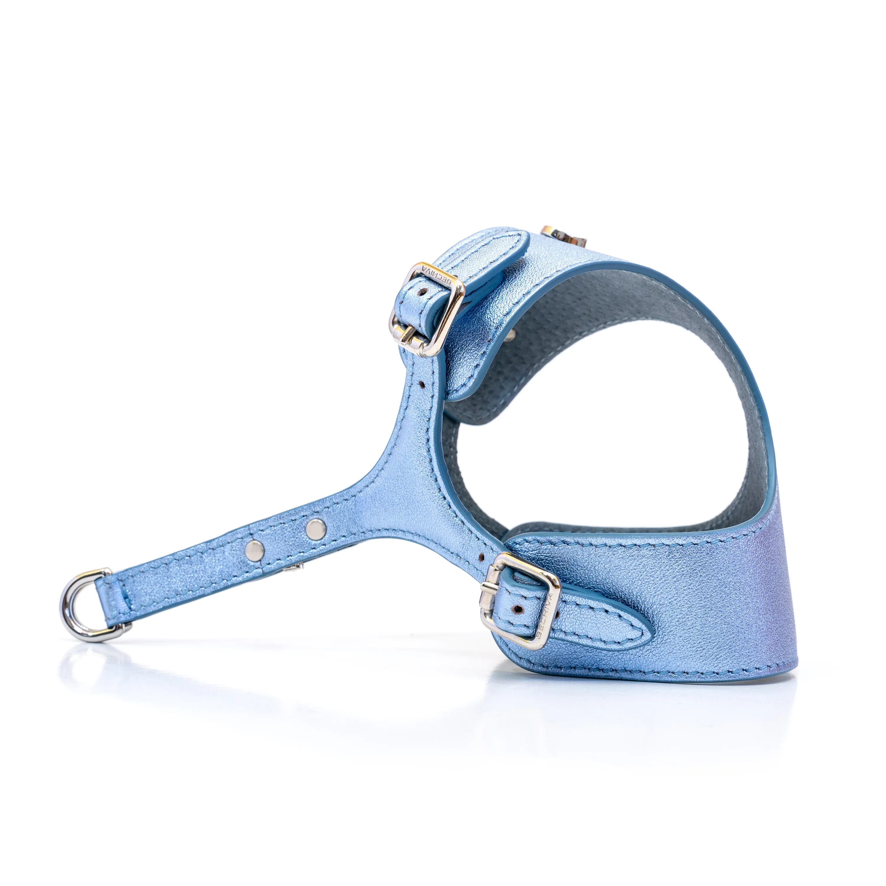 Finished with premium Italian metal hardware in your choice of gold, silver or black, the harness includes a sturdy D-ring for easy lead attachment. Whether for everyday walks or special outings, the Tino harness pairs timeless design with exceptional craftsmanship. Beautifully presented in Bechiva's signature gift box, it's an ideal choice for pet owners seeking comfort, elegance and quality in one beautifully made piece.