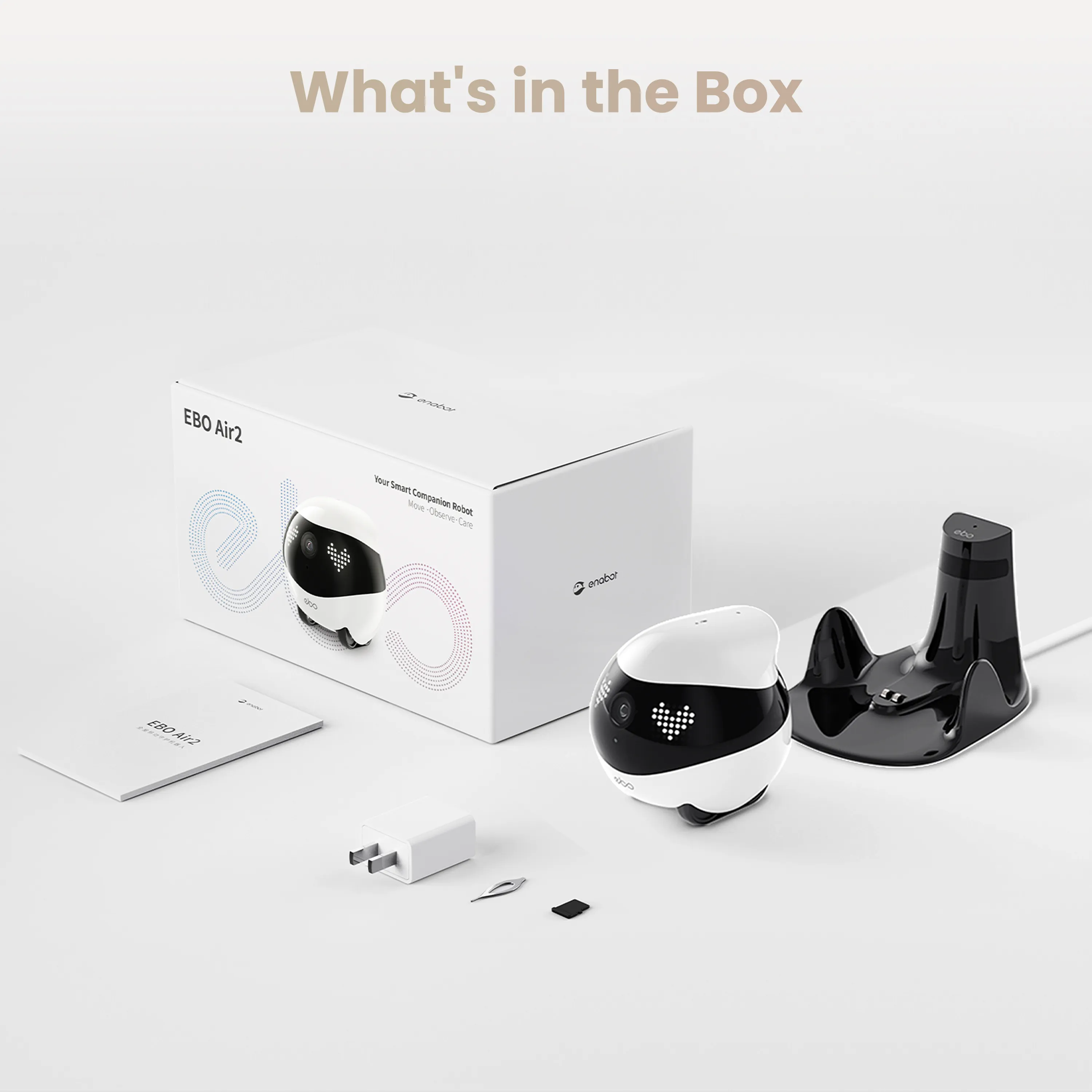 EBO Air 2 is an intelligent companion robot designed to keep you connected to your home, your pets, and your loved ones. With a full HD camera, two-way audio, night vision, and AI-powered movement, it brings together smart technology and human warmth in a single, mobile device.