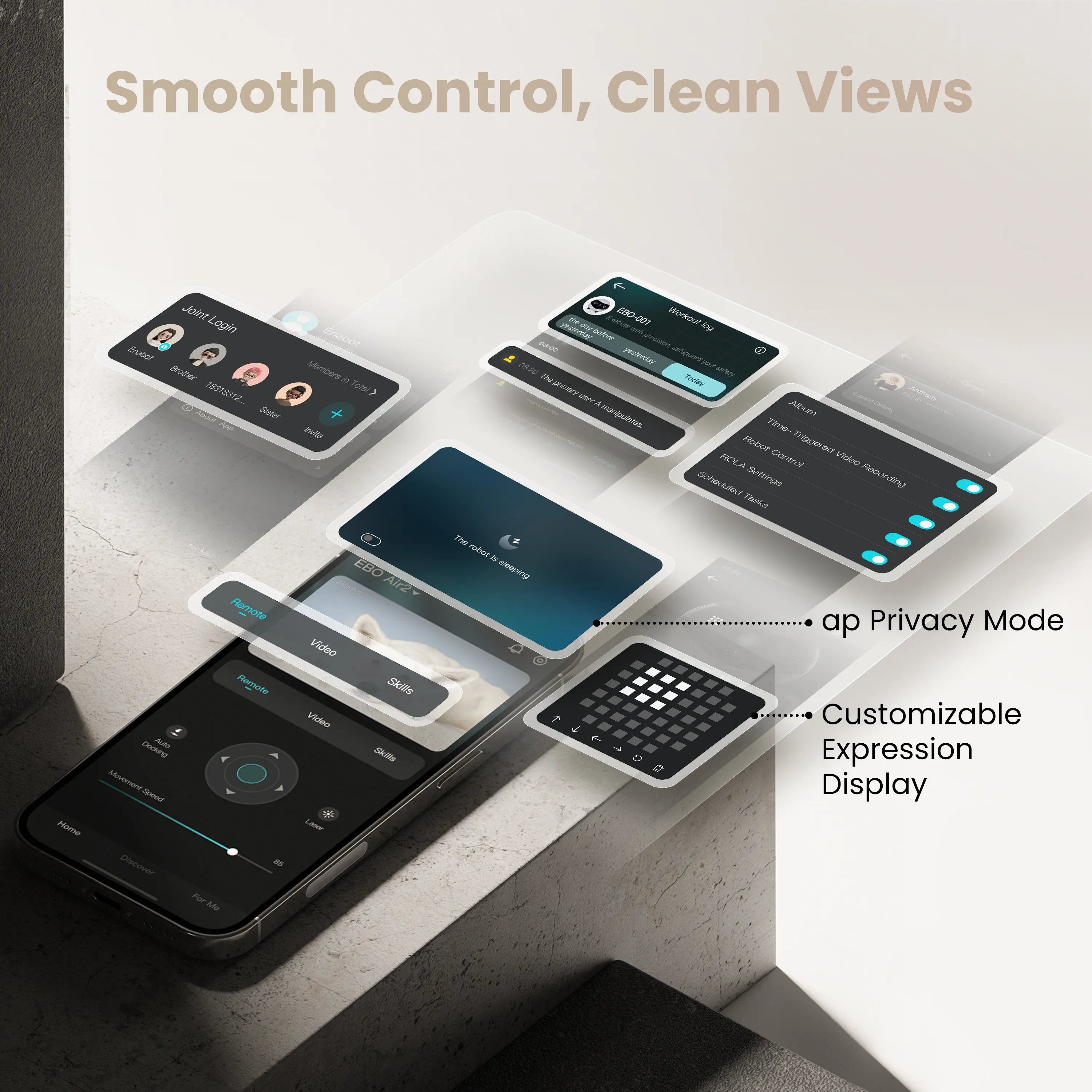 It recognizes people and pets, follows custom patrol routes, and can even be controlled by voice. Whether you're at work, traveling, or just in another room, EBO Air 2 helps you stay close to the moments that matter most. With its playful personality and intuitive app, it doesn't just monitor your home - it becomes a part of it.