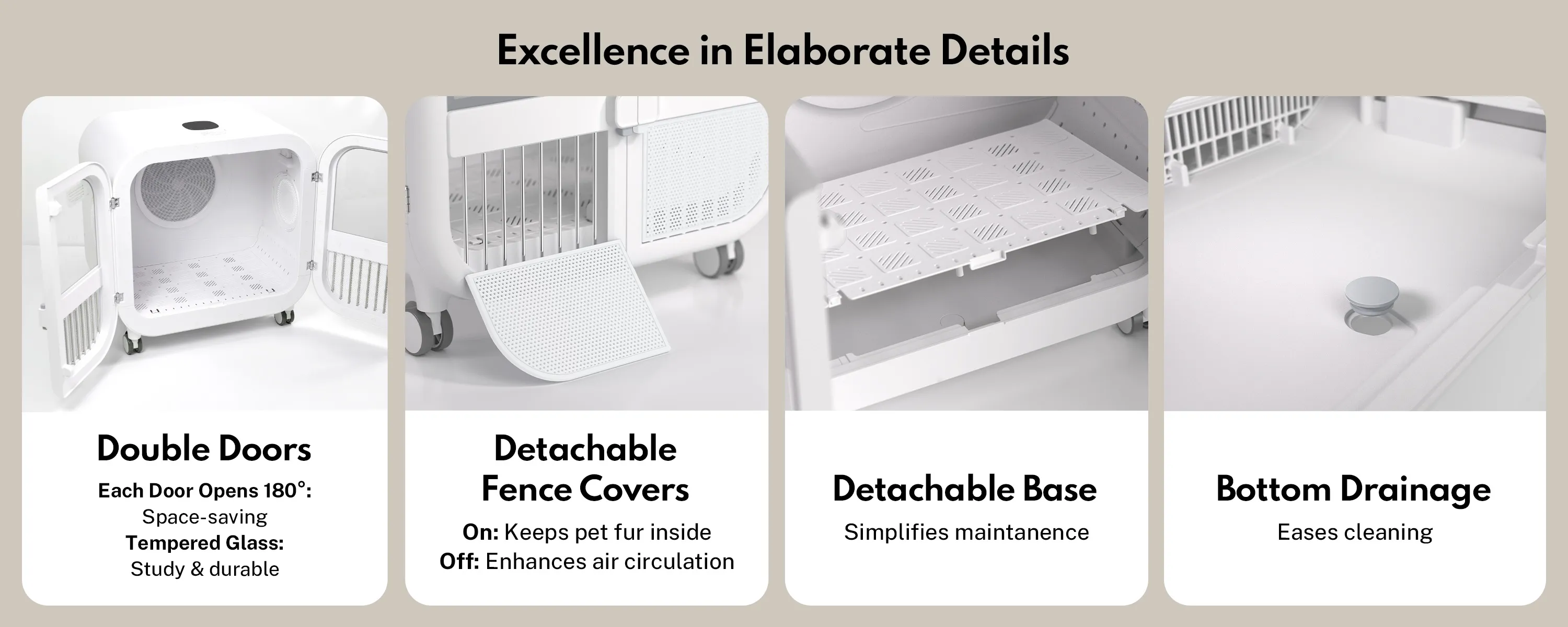 Whisper quiet operation and advanced noise reduction technology help minimise anxiety, while multiple built-in safety features including overheating protection, a leak proof base, and medical grade materials offer added peace of mind. The compact design fits easily into any home, and the removable filters and tray make cleaning effortless. Whether you are managing multiple pets or simply looking to upgrade your grooming routine, Drybo Ultra is a must buy that saves time, reduces mess, and gives your furry companions the gentle, comfortable care they deserve.