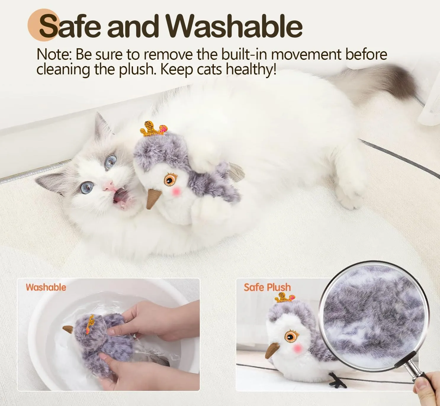 The beating wings cat toy looks like a real sandpiper, an eye-catcher for cats, keeping your kitty on her paws and engaged in real time, alleviating boredom and loneliness and promoting cat's exercise when you are away from home, great interactive cat toys.