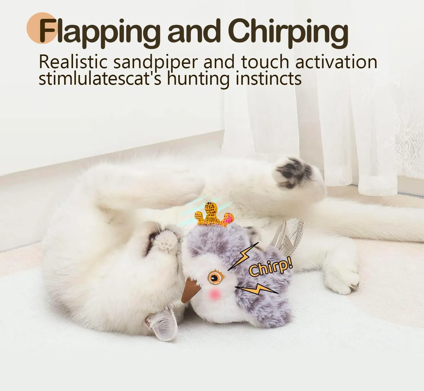 Make play fantastic with the fluffy sandpiper, which makes lifelike chirping sounds once playtime begins, beckoning every bat, bite, snuggle and chase!