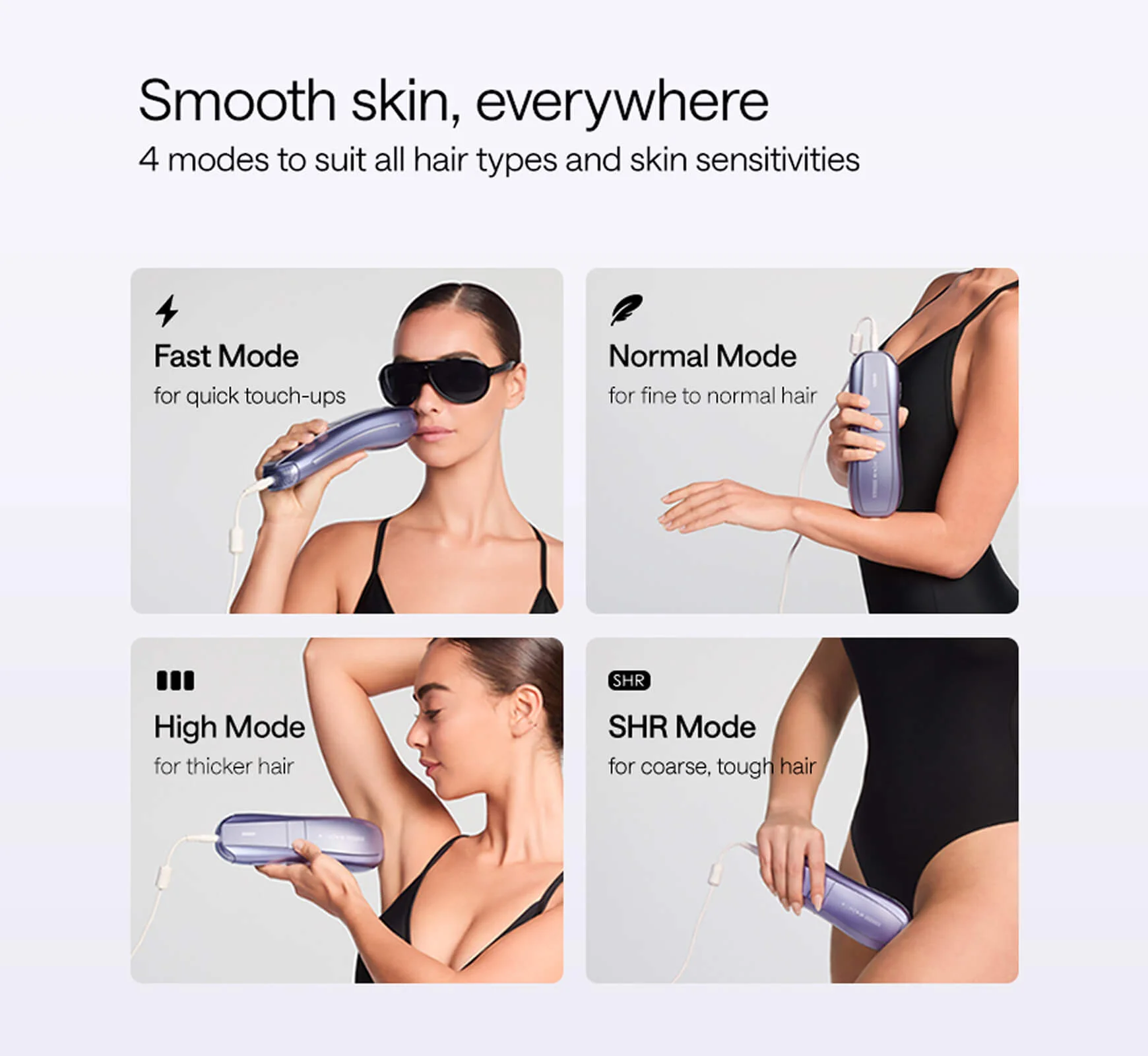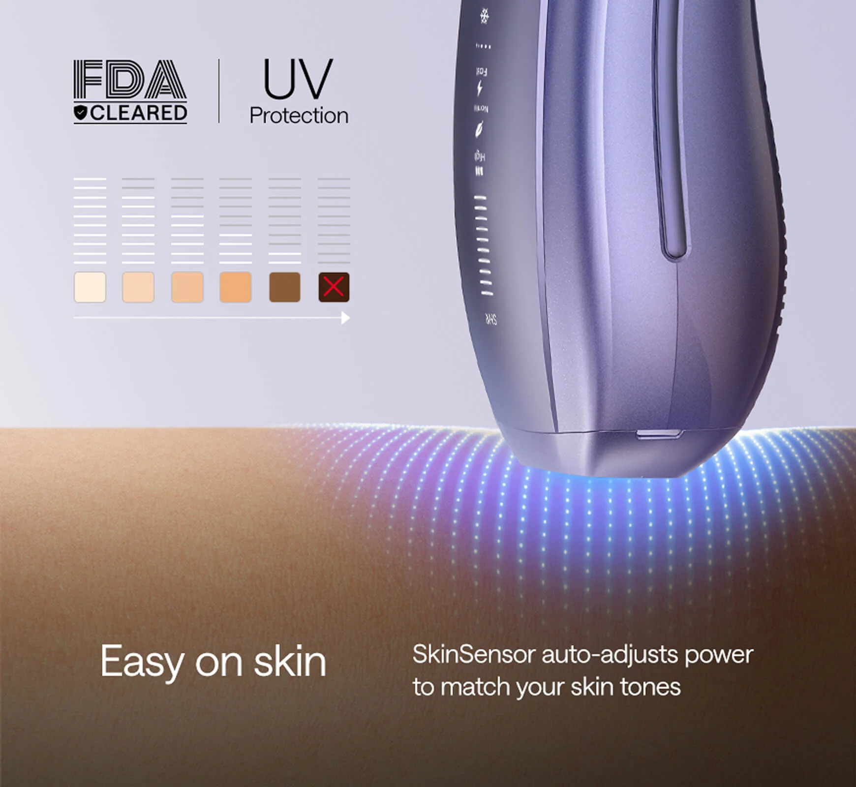 The Air10 includes dual IPL lights for more effective treatments, plus SkinSensor technology to automatically detect skin tone and adjust treatment power to deliver worry-free sessions. Salon-inspired SHR Mode combines the energy of four IPL bursts in a single flash to conquer even the most stubborn hairs.