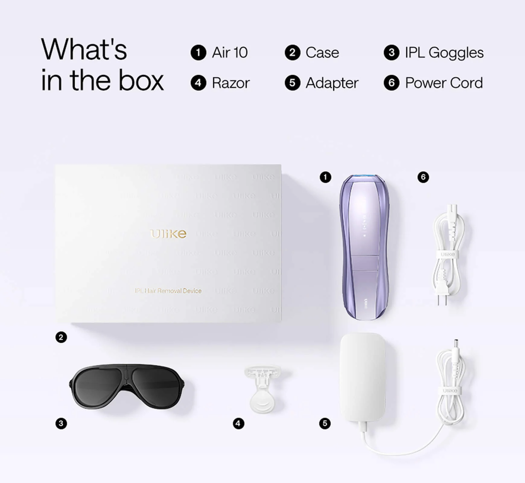 The Air10 is Ulike's most advanced at-home Sapphire IPL hair removal device, equipped with dual IPL lights to deliver visible 96.5% hair reduction in just 2 weeks. Designed to save time and work on your schedule, you can say goodbye to razors and booking laser hair removal appointments, as the Air10 utilizes next-gen IPL technology to minimize hair growth over time, permanently.