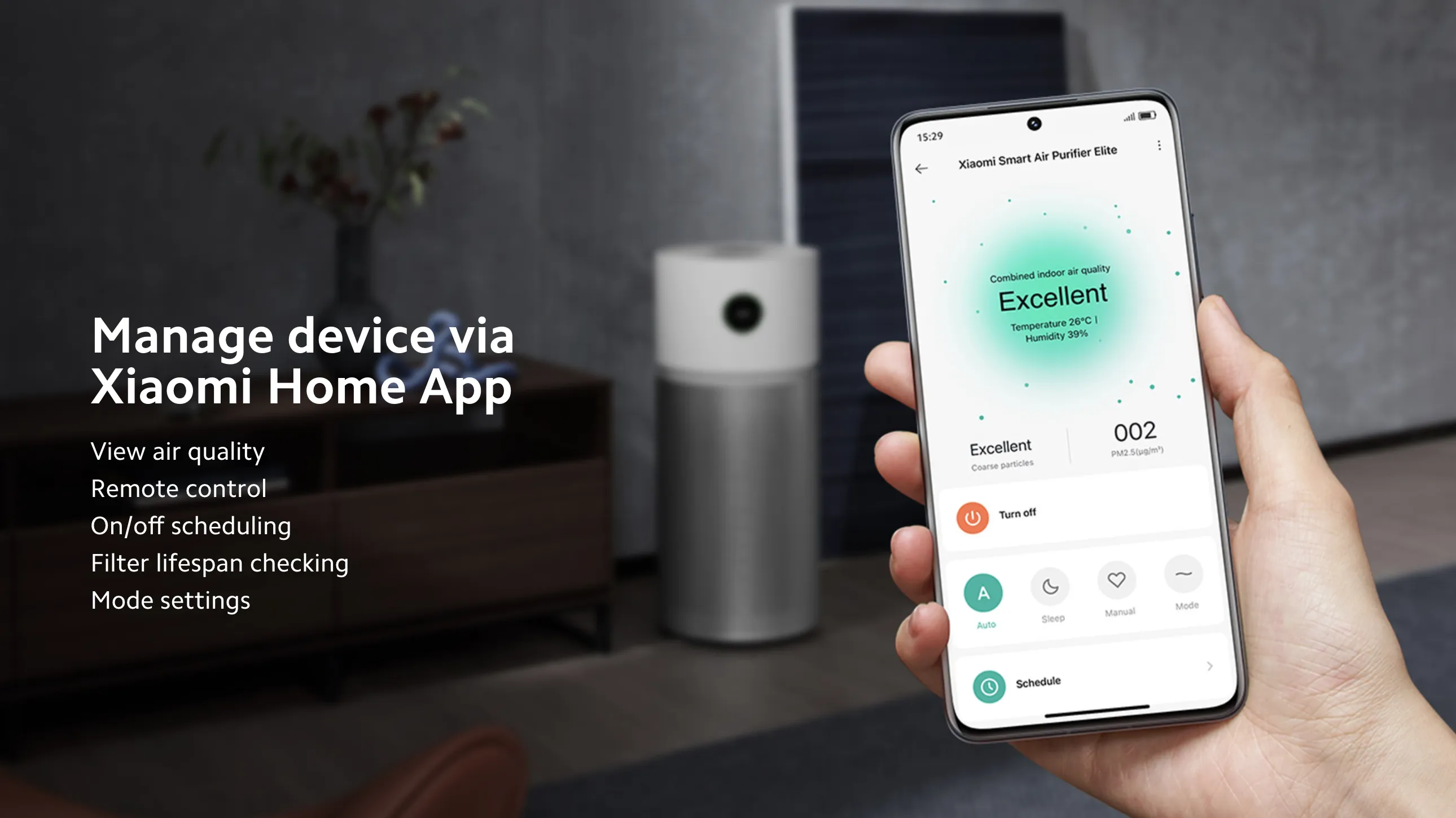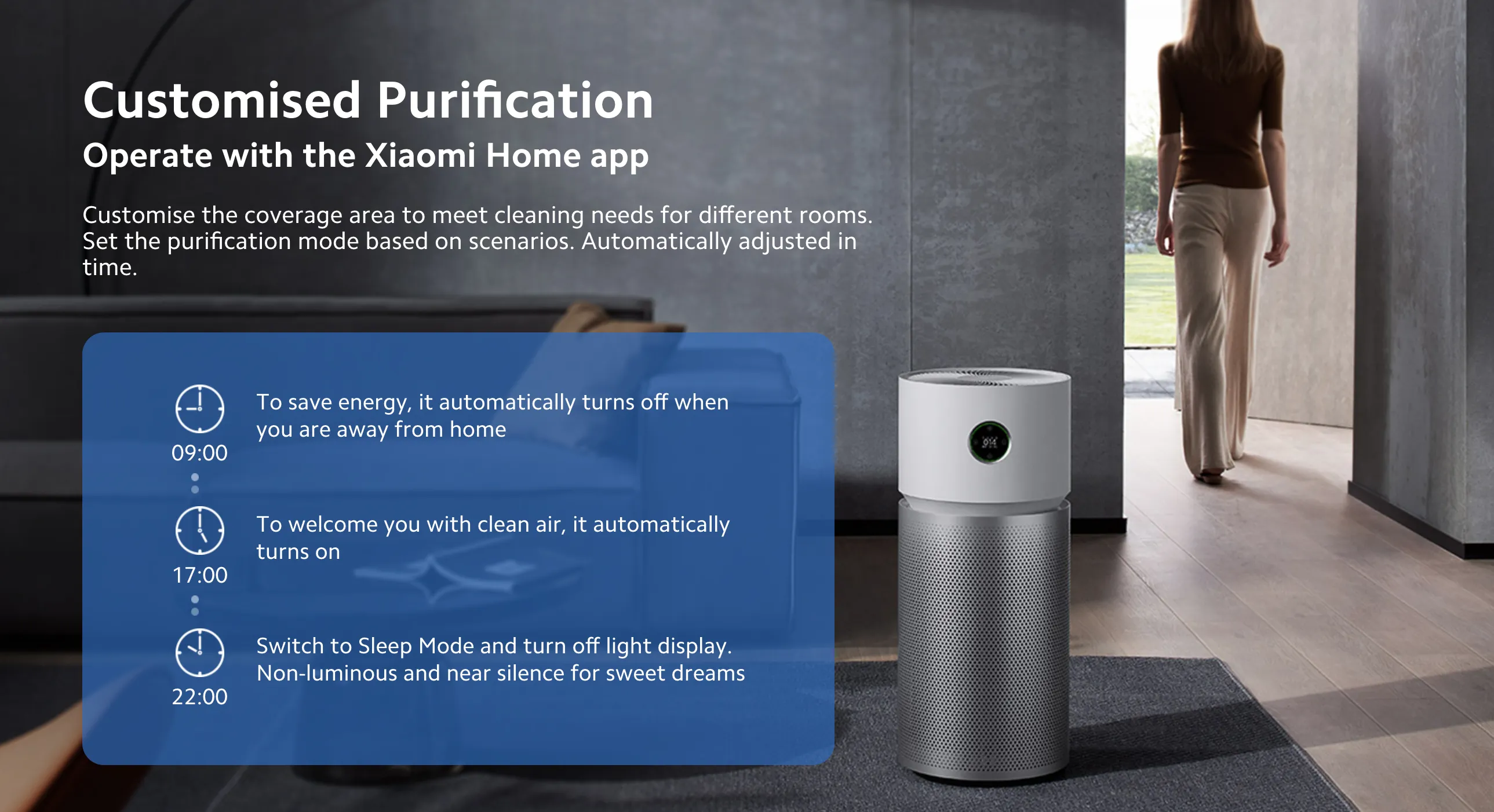 The Xiaomi Smart Air Purifier Elite delivers high-performance, whole-room purification in a sleek, modern form. With a powerful 600m²/h particle CADR, it refreshes the air in spaces up to 125m² quickly and effectively. Its advanced three-stage filtration system combines a high-efficiency electrostatic filter, high-iodine activated carbon, and UV-C LED plus plasma sterilisation to remove 99.98% of particles as small as 0.3μm, neutralise odours, and inactivate airborne viruses in just 30 minutes. Ultra-quiet operation, real-time air quality monitoring, and full smart-home integration make it a premium choice for clean, healthy air.